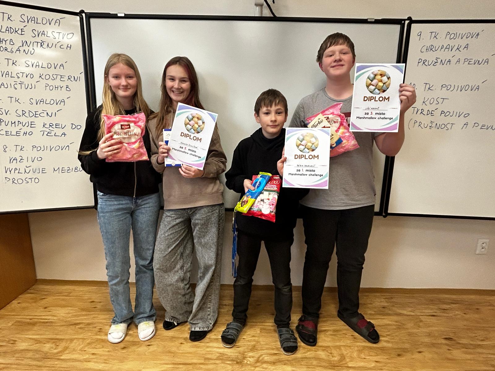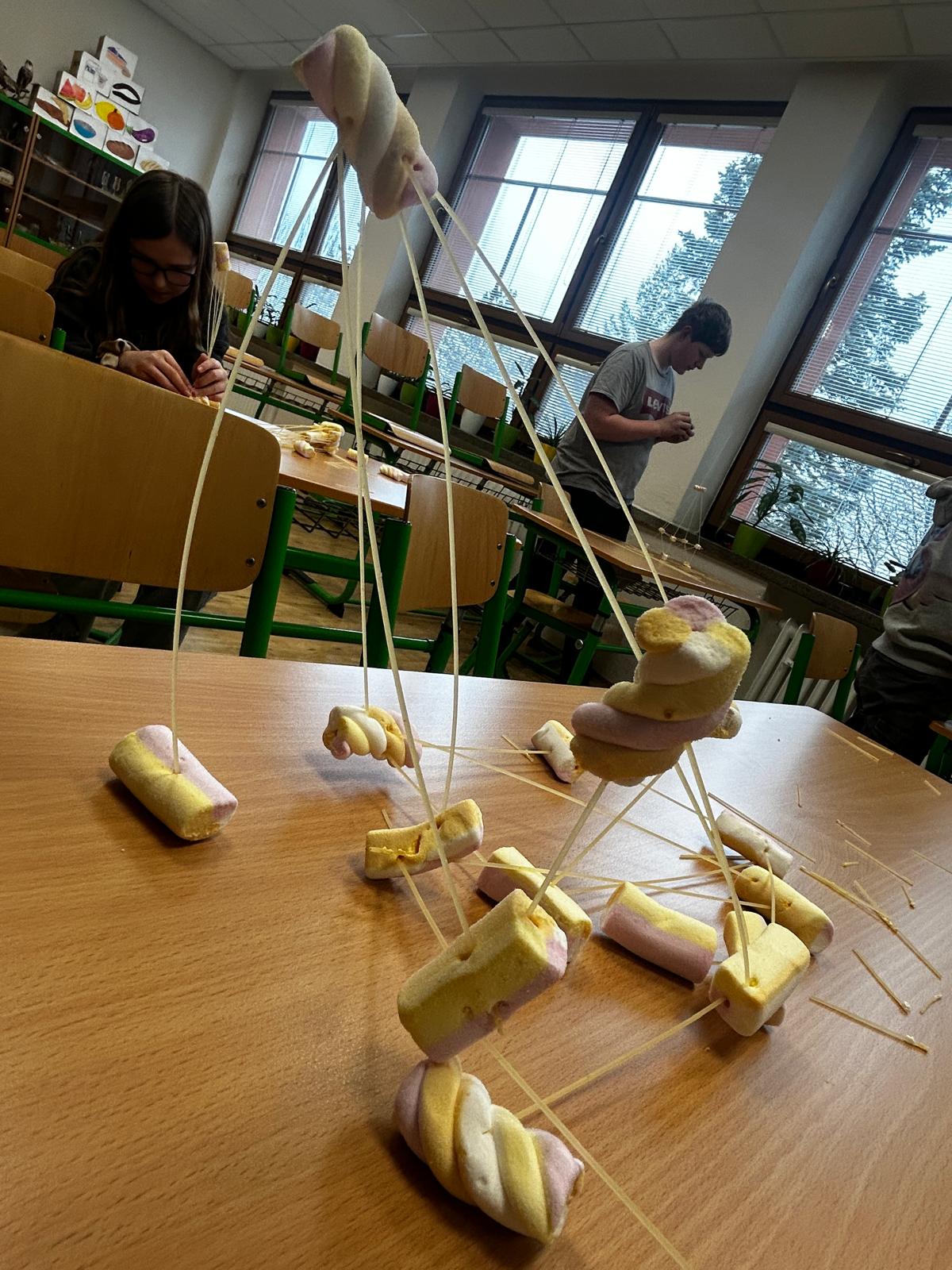 V úterý 17. února uspořádal žákovský parlament netradiční akci s názvem Marshmallow challenge. Cíl byl pro všech 10 účastníků stejný: postavit z marshmallow bonbónů a špaget co nejvyšší věž.