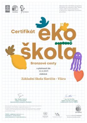 Oznámení o získání Certifikátu Bronzové cesty - Ekoškola - platnost do r. 2029 Autor: Majeriková | Zveřejněno: pondělí 13. dubna 2026 | 5x Celý článek